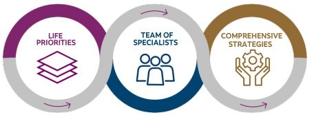 Our team of specialists offers insights and new possibilities. They are always ready to adjust your plan as your life changes, so you can feel confident in your way forward.